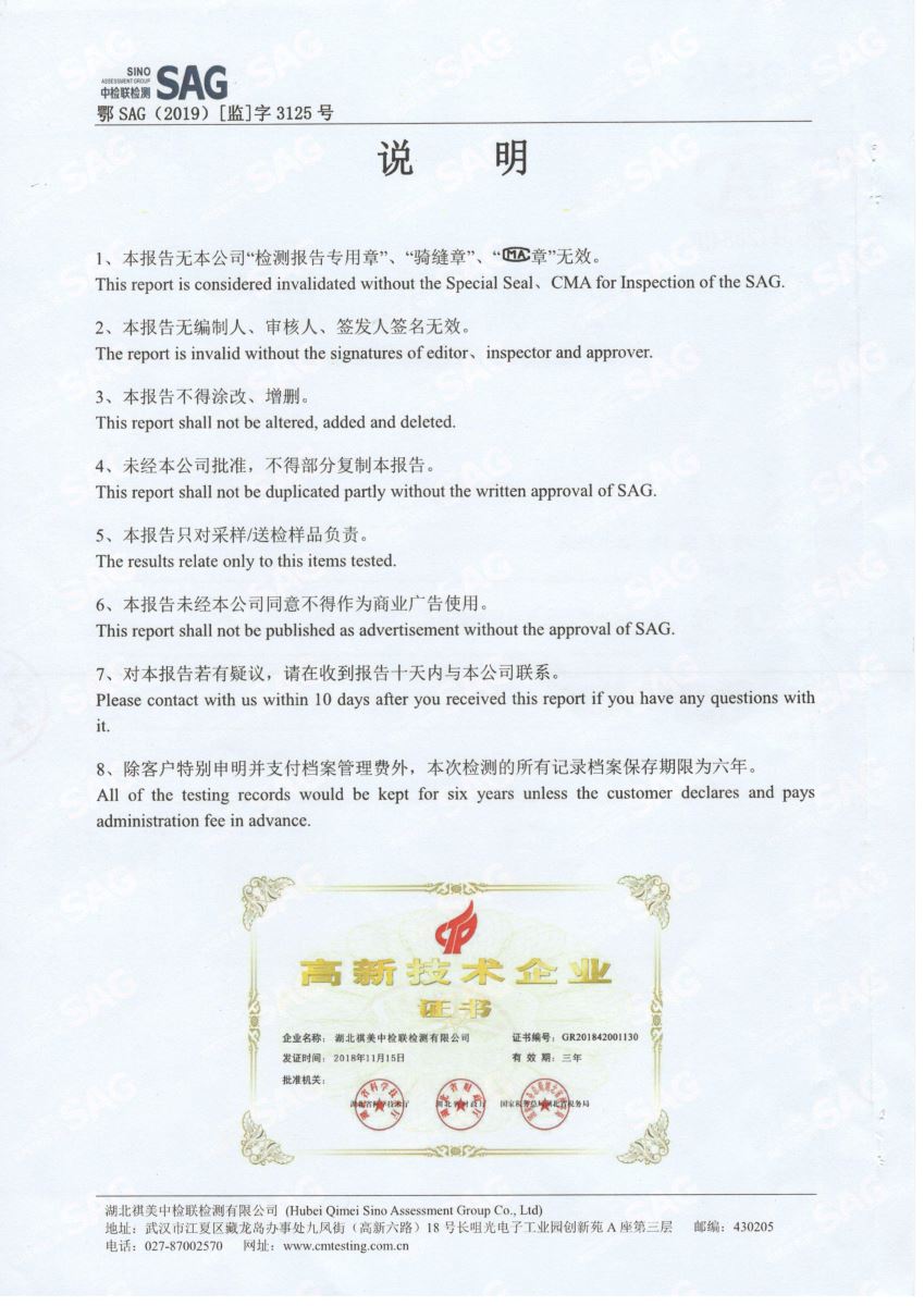 2019年第三季度,公司按照国家企业安全生产标准,对公司所排出的废气,委托第三方进行抽样检测,详细的检测报告如下